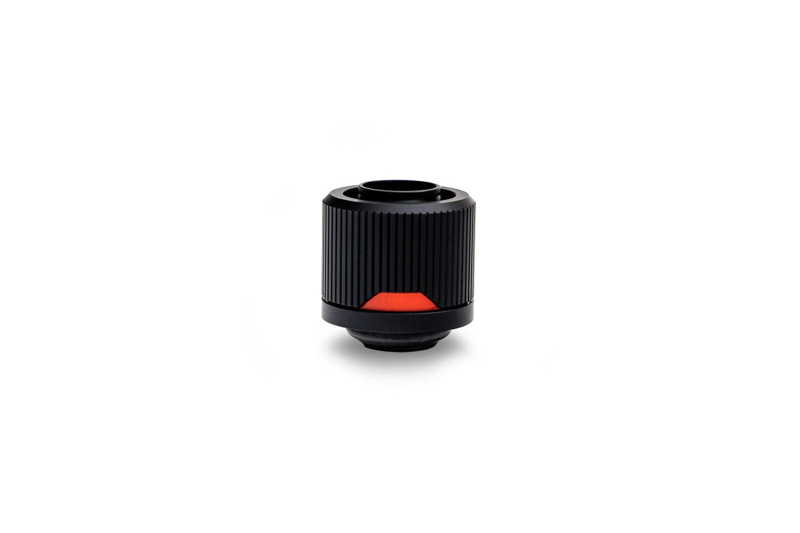 ロックリングは、リングの下にあるゴム製ガスケットを圧縮することで、フレキシブルチューブがフィッティングから引き抜かれるのを防ぎます。外側の溝は、手で簡単に締め付けることができます。コンプレッションリングには、EK-Quantum特徴的な形状の切り欠きがあり、カラーリングを見せることができるようになっています。カラーリングは多くの色から選べ、コンプレッションロックリング手前のフィッティングにねじ込みます。カラーリングは別売りです。