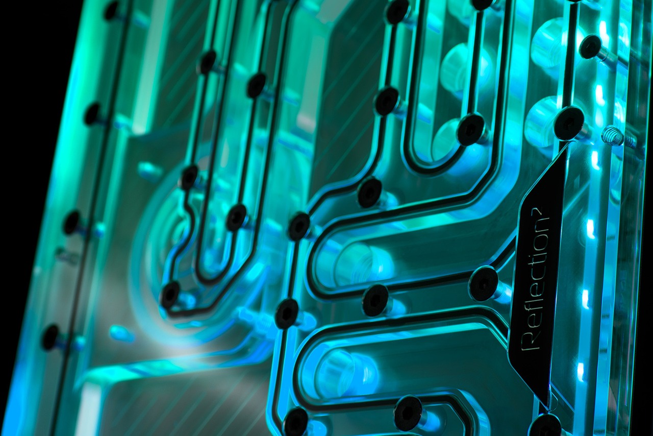 Quantum Reflection² ディストリビューションプレートは、Quantum Torque フィッティングと EK-Quantum Surface ラジエーターを中心に設計されています。