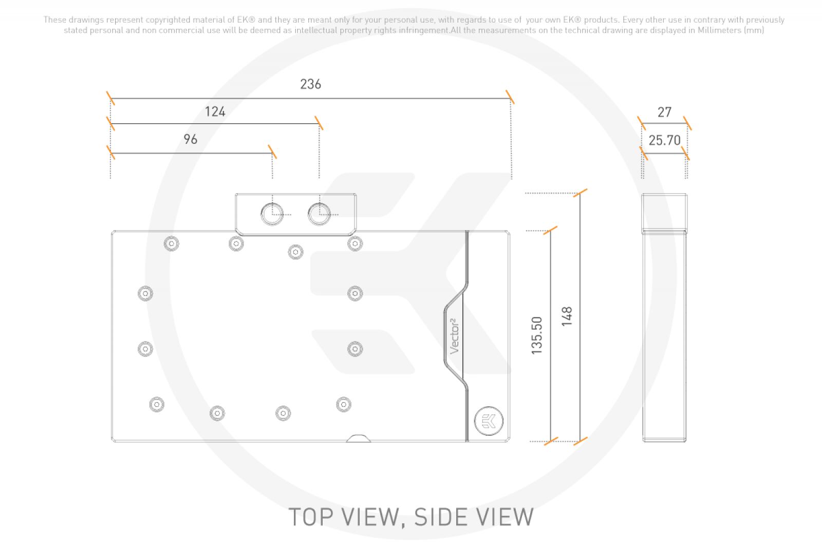 次世代ウォーターブロックの外観は、ミニマルな直線で占められています。11mm厚の銅製コールドプレートは、すべてのVector² GPUウォーターブロックに採用されています。Vector² GPUウォーターブロックのアセタールバージョンは、オールブラックでステルスですが、ウォーターブロック全体を取り囲む洗練されたアドレス指定RGBライトガイドを装備し、裏側にもエレガントな視覚効果を発揮します。