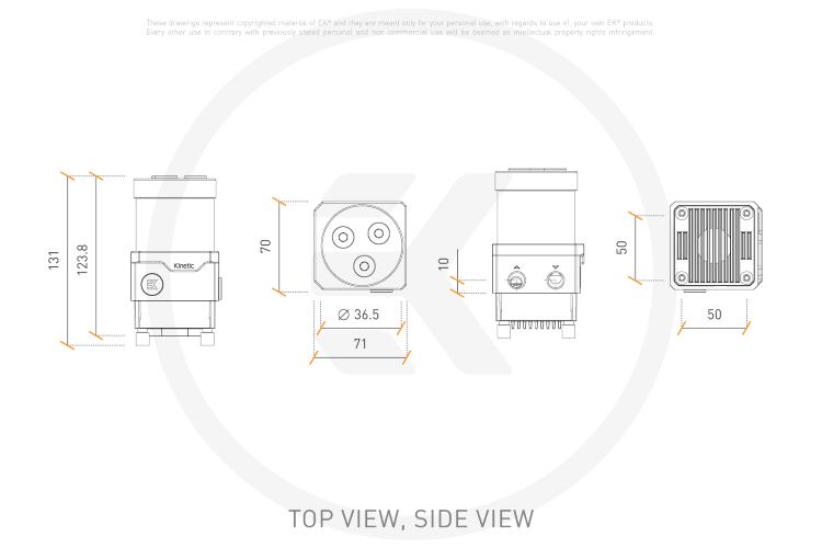 EK-Quantum Kinetic TBE 120 DDC PWM D-RGBコンボユニットは、市場で実績のあるDDCポンプをベースにしたポンプ・リザーバー・アセンブリで、小さなフォームファクターに究極のパワーをもたらします。新しいKineticコンボユニットは、EK Quantumラインの製品の一部で、洗練されたアドレサブルD-RGBライティングの実装と、小型フォームファクターのPC愛好家コミュニティで人気のある純正DDC 4.2ポンプを搭載しています。 リザーバーには合計6つのG1/4インチポートが搭載されており、ユーザーは液冷ループに最も最適なセットアップを選択することができます。DDCモーターは、底面のヒートシンクで冷却されます。